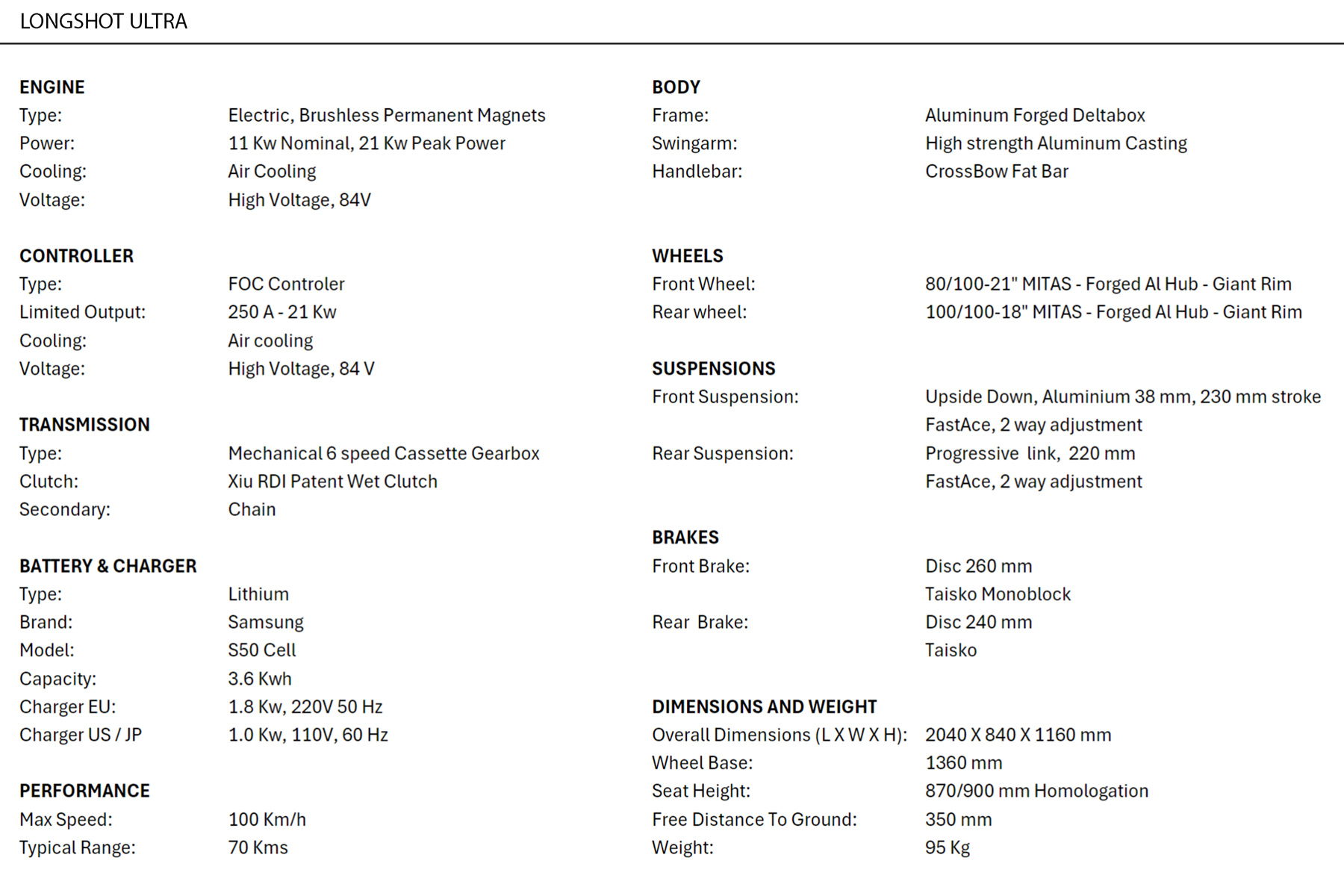 Die Longshot Ultra ist ein elektrisches Enduro- Modell , das zwar das gleiche Fahrgestell wie das Backcountry hat, aber völlig andere, an seine Enduro-Ausrichtung angepasste Komponenten wie Federung, Schwinge, Bremsen und Räder aufweist.